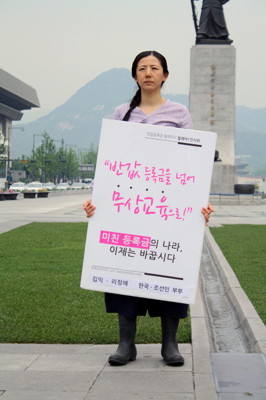 등록금넷은 지난 5월 31일 자체 운영 중인 인터넷 카페의 사진 게시판에 ‘김익-리정애 (한국-조선인) 부부’라는 제목으로 릴레이 1인 시위에 참여한 조총련계 리정애 씨 부부의 사진을 게재했다. 사진 속 리 씨는 “반값 등록금을 넘어 무상교육으로, 미친 등록금의 나라 이제는 바꾸자”는 구호가 적힌 구호판을 들고 있다.