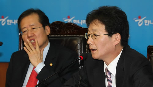 한나라당 홍준표 대표와 유승민 최고위원이 또 다시 한판 벌였다.