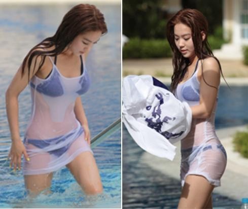 한편, 최근 소속사 측은 김희정이 보라색 비키니를 입고 속이 비치는 시스루 룩을 입은 채 수영장에서 나오는 모습이 담긴 사진을 공개했다.