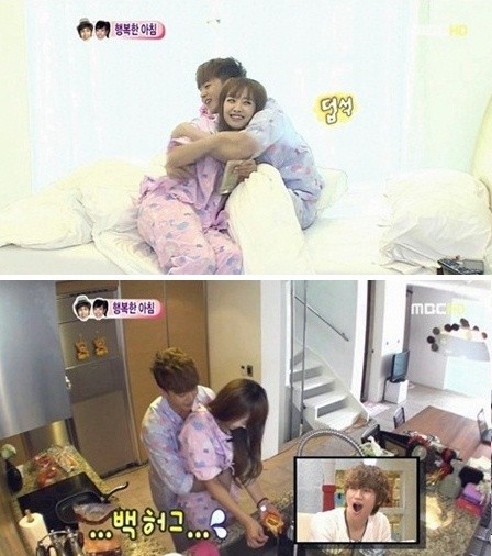 그러나 우결의 MC들과 시청자들을 깜짝 놀라게 한 장면은 따로 있었다. 미국식 아침식사를 주문한 닉쿤을 위해 빅토리아는 주방에 들어가 요리를 하기 시작했는데, 갑자기 닉쿤이 뒤에서 "여보야 조심해"라고 말하며 진한 '백허그'를 시도한 것.