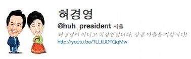 이 트위터 프로필에는 "18대 대통령 당선 예정인 본좌 허경영입니다. 공화당 총재, 천재 정치 인터넷 대통령, 저서 '무궁화 꽃은 지지 않았다' 5000만부 판매 예정, 바이칼 호수 영구 사용, 세계통일 예정"이라는 문장이 적혀 있어, 트위터 계정의 주인이 바로 허경영 자신임을 강조했다.