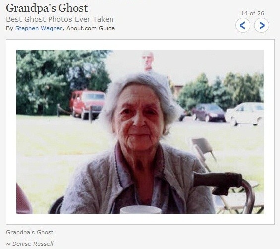 사진 속 할머니의 손녀는 <ABOUT.COM>과의 인터뷰에서 “할머니가 세상을 떠나기 얼마 전 가족들과 함께 소풍을 나왔고, 기념 사진을 찍었다”며 “할머니 머리 위의 이 남자는 1984년 8월 돌아가진 우리 할아버지”라고 주장했다.
