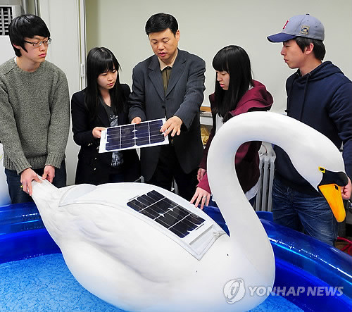 태양광으로 '무엇이든 할 수 있다'는 것을 보여주려고 안 교수는 지난 5월 졸업반 학생들과 함께 건국대 일감호에 태양력으로 움직이는 모형 백조 '솔라스완'을 띄워 주목을 받기도 했다.