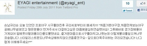 남규리는 이튿날까지 자신의 시구 모습을 담은 '민망한' 사진들이 각종 인터넷사이트에 떠돌자, 소속사를 통해 공식 입장을 밝혔다.