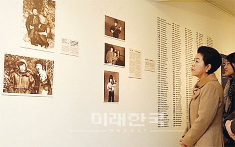 ▲한동대 단체가 주관한‘그곳엔 사랑이 없다’사진전을 관람 중인 김윤옥 여사