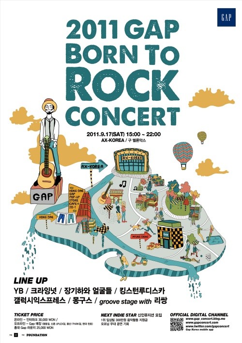 콘서트, 넥스트 인디 스타 지원, 홍대 팝업 스토어 운영 관련 자세한 사항은 www.gapconcert.com을 통해 확인 할 수 있다. (콘서트/ 팝업 스토어 문의 : 02.3444.9989)