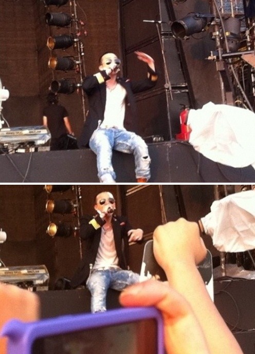 이날 탑과 함께 모자를 쓰고 무대에 선 지드래곤은 무대 열기가 점점 뜨거워지자 아예 모자를 벗어던지고 무대 위에 걸터앉아 노래를 부르는 파격적인 퍼포먼스를 선보였다.