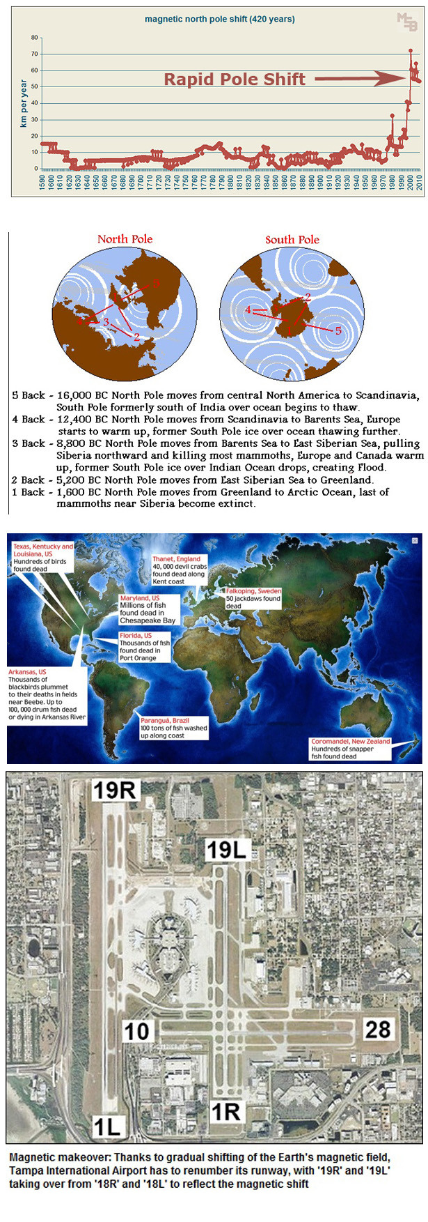 플로리다 탐파 국제공항의 경우 올해 초 일부 활주로가 폐쇄되기도 했다. 이유는 자북극(磁北極) 위치의 변화로 인해 여객기의 네비게이션에 오차가 발생했기 때문이다. 결국 공항 측은 지자기 변동으로 인해 활주로를 변경했다. 지구 자기장의 변화와 이에 따른 영향은 최근 들어 미국의 과학자들 사이에서 많은 연구가 진행되고 있다.