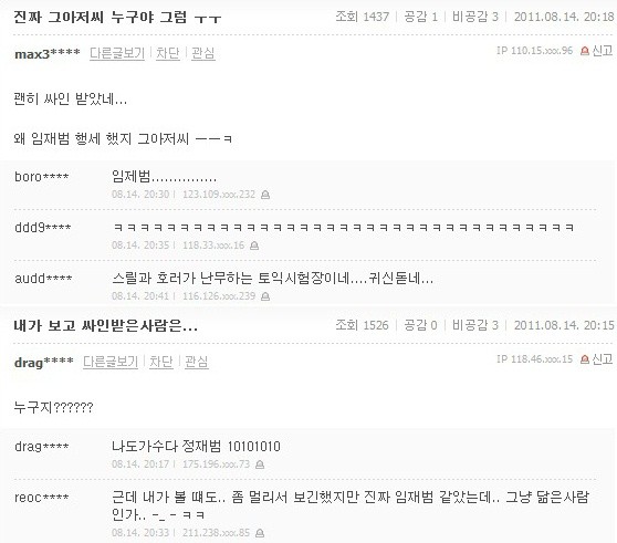 이들의 주장이 모두 사실이라면 누군가 토익 시험장에 나타나 임재범 행세를 하며 어린 학생들에게 사인 공세를 했다는 결론이 나온다.