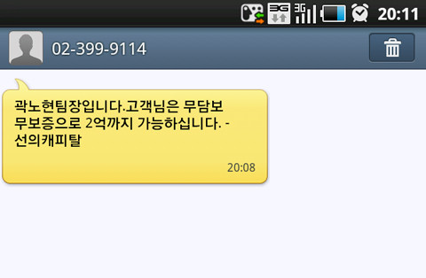 “곽노현 팀장입니다. 고객님은 무담보·무보증으로 2억까지 대출 가능하십니다.”