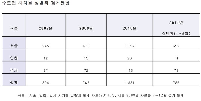 직장여성 4명 중 1명(24.8%)은 버스나 지하철에서 성추행을 당한 경험이 있다고 답했고, 최근 1년 사이 2회 이상 피해경험이 있는 경우도 30.1%로 나타나 여성들의 우려가 현실임이 입증됐다.