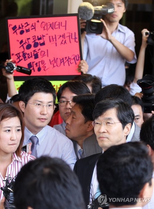 곽 교육감이 들어가고 나서도 지지자와 반대자들은 서로 욕설을 하며 한동안 충돌을 빚었다.
