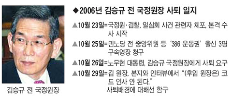 노무현, 간첩사건 수사중인 金昇圭 국정원장 불러, "그만두시지요"