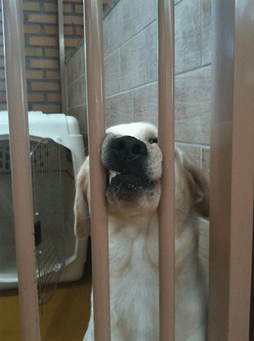 사진 속 축복이는 문창살 사이에 얼굴을 넣고 장난기 어린 모습을 보이고 있다.