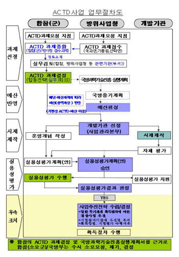 선정된 과제는 시범개발 후 군사적 실용성이 있다고 판단될 경우 무기체계 양산 또는 연구개발에 기술을 활용할 수 있는 길이 열리게 되며, 개발비는 전액을 정부에서 지원하게 된다. 방사청은 2008년부터 ACTD 제도를 도입, 현재 19개 사업을 추진 중이다.