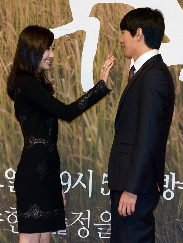 11일 오후 2시 서울 양천구 목동 SBS 사옥에서 열린 새 월화드라마 ‘천일의 약속’제작 발표회가 열린 가운데 배우 수애와 김래원이 멋진(?) 포즈를 취하고 있다.