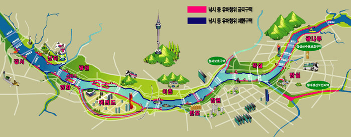 ▲ 금지구역에서 낚시를 하다가 적발되면 100만원의 과태료가 부과된다. 금지구역 안내는 한강사업본부 홈페이지(hangang.seoul.go.kr)에서 볼 수 있다.