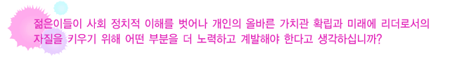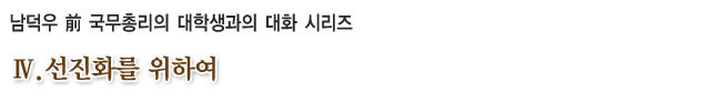 취직이 어려우니 그것이 최대 관심사가 될 수 밖에 없겠지요. 그러나 인생에서 무엇을 하고자 하는가를 골몰이 생각하고 노력의 방향을 설정하지 않으면 지도자가 될 수 없습니다.