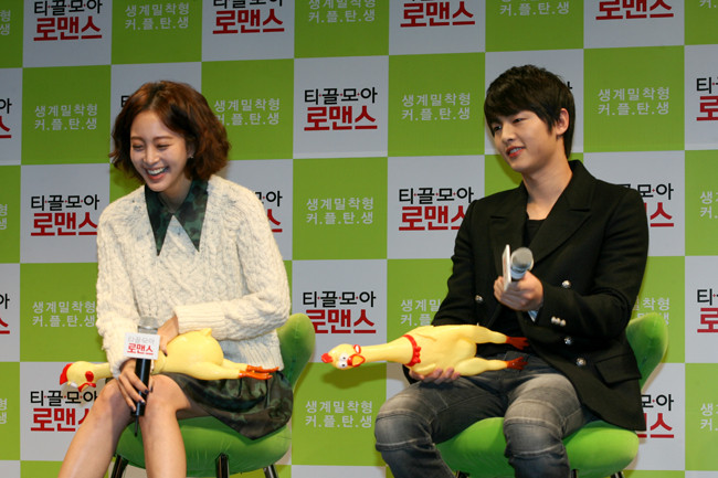 19일 오전 서울시 강남구 압구정CGV에서 영화 ‘티끌모아 로맨스’의 제작 보고회가 열린 가운데 배우 한예슬과 송중기가 기자간담회에 참석했다.