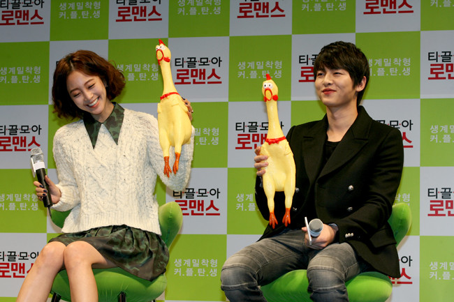 19일 오전 서울시 강남구 압구정CGV에서 영화 ‘티끌모아 로맨스’의 제작 보고회가 열린 가운데 배우 한예슬과 송중기가 기자간담회에 참석했다.