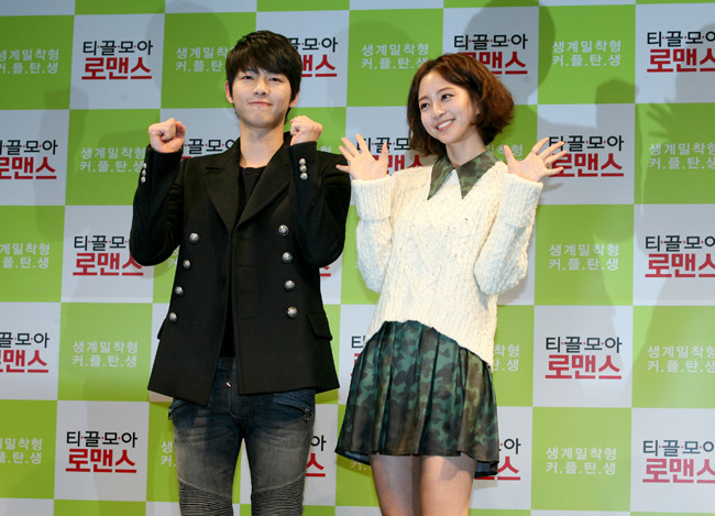 19일 오전 서울시 강남구 압구정CGV에서 영화 ‘티끌모아 로맨스’의 제작 보고회가 열린 가운데 배우 송중기와 한예슬이 포토타임을 갖고 있다.