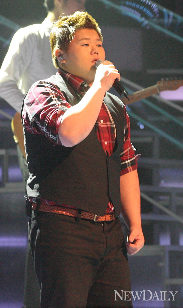 21일 밤 서울 경희대학교 평화의 전당에서 열린 Mnet ‘슈퍼스타K3’ 네 번째 생방송 무대에서 김도현이 뱅크의 '가질 수 없는 너'를 부르고 있다.