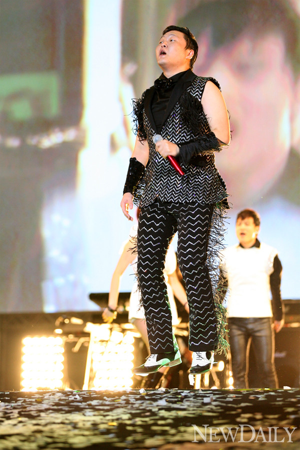 22일 저녁 서울 잠실 올림픽 주경기장서 열린 현대자동차 '아이 페스타(I-FESTA)' 콘서트에서 가수 싸이가 화려한 공연을 펼치고 있다.