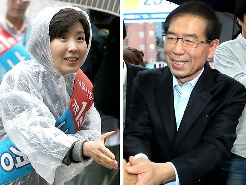 특히 24일 안철수 서울대 융합과학기술대학원장이 야권 박원순 후보 지지 입장을 공개적으로 표명하면서 선거 구도가 한나라당 박근혜 전 대표와 안 원장의 대리전 양상으로 굳어지고 있다.