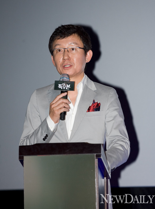26일 오전 서울 롯데시네마 건대입구점에서 영화 ‘특수본(감독 황병국)’의 제작보고회가 열린 가운데 방송인 손범수가 진행을 보고 있다.