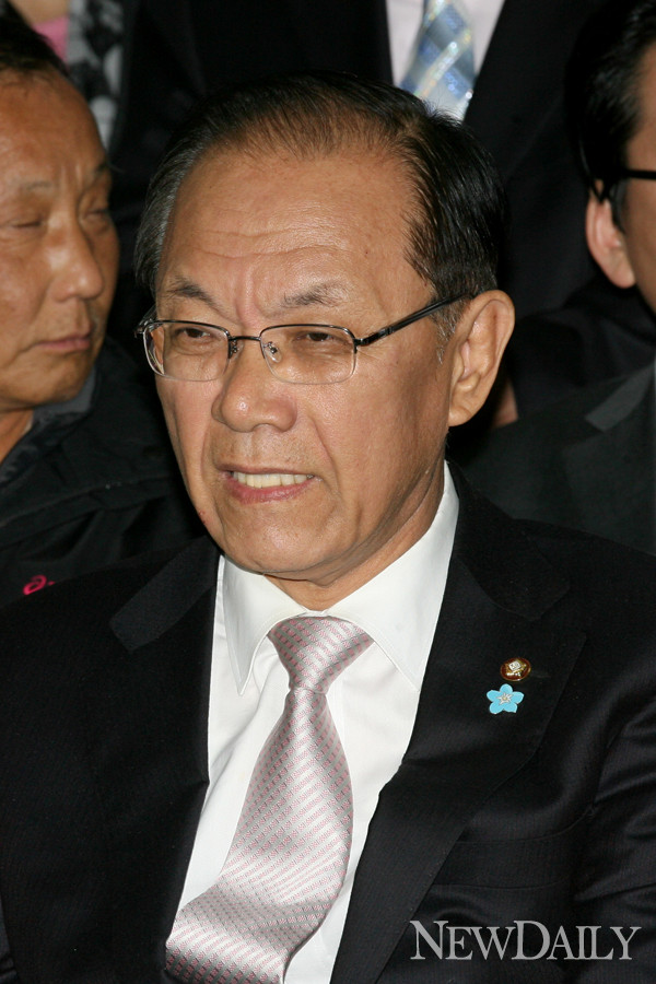 이날 8시 정각 개표상황실 TV를 통해 출구조사 결과를 지켜본 황우여 원내대표가 씁쓸한 표정을 짓고 있다.