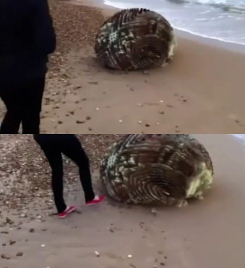 이 영상을 찍은 게시자는 "해변에서 오늘 아침에 발견했다. 친구가 걷어차 봤지만 꿈쩍도 하지 않았고 고약한 냄새가 났다"며 "마치 거대한 조개와 비슷했다"고 설명했다.
