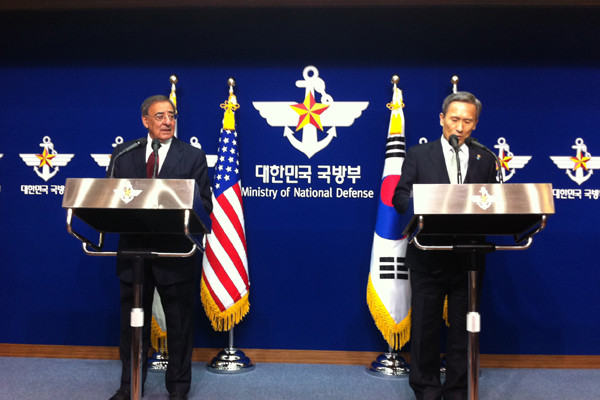 파네타 장관은 “미국은 대한민국의 안보를 위해 지속적으로 세계적인 군사력을 제공할 것이다. 이것은 상당히 중요하다. 북한은 여전히 심각한 위협으로 존재하고 있다. 북한은 무고한 시민까지도 도발의 대상으로 삼았기 때문이다. 또한 북한의 장거리 미사일과 핵무기 개발을 지속하고 있고, 역내에서 확산을 계속하며 국제사회 질서에 도전하고 있다. 이런 북한의 위협에 대응하기 위해 양국은 연합대응능력을 제고하기 위해 심도 있는 대화를 나눴다. 미국은 북한의 핵위협에 단호하게 대응할 수 있고, 평양이 오해를 할 수 없도록 핵우산을 포함한 효과적인 확장억제전력을 제공할 것”이라고 밝혔다.