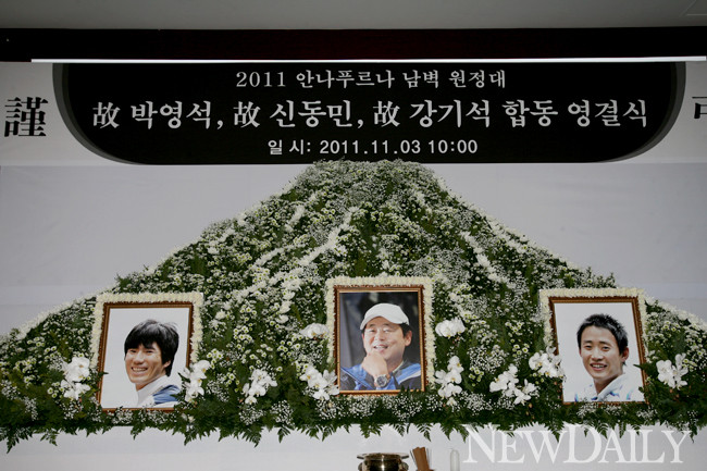 지난달 18일 히말라야 안나푸르나에서 '코리안 루트'를 개척하다 실종된 고(故) 박영석 대장과 강기석, 신동민 대원의 합동 영결식이 3일 오전 엄수된다.