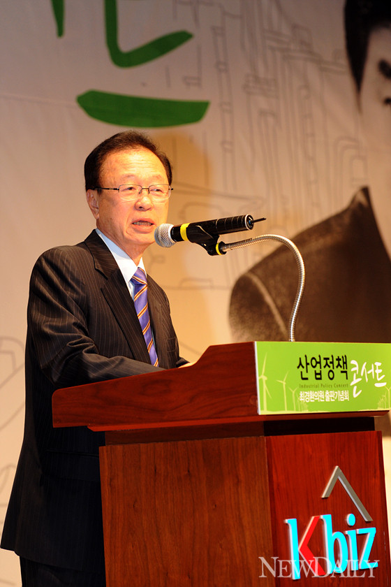 박희태 국회의장이 3일 오후 서울 여의도 중소기업중앙회에서 열린 최경환 전 지식경제부 장관 출판기념회에 참석해 축사를 하고 있다.