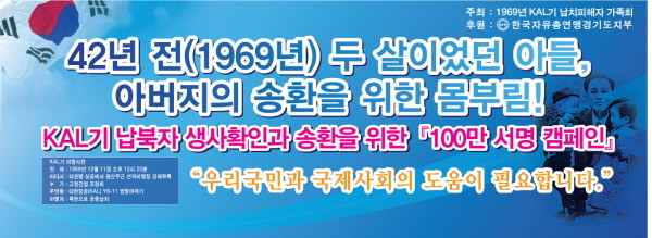납북자 송환과 생사확인 요구 100만인 서명운동을 벌이고 있는 1969 KAL 납북자 11인 가족회(이하 가족회)에 든든한 후원자가 생겼다.