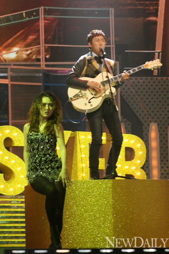 4일 밤 서울 경희대 평화의전당에서 Mnet '슈퍼스타K3' 준결승 생방송 무대가 펼쳐진 가운데 버스커버스커가 보아의 'Valenti'로 공연을 펼치고 있다.
