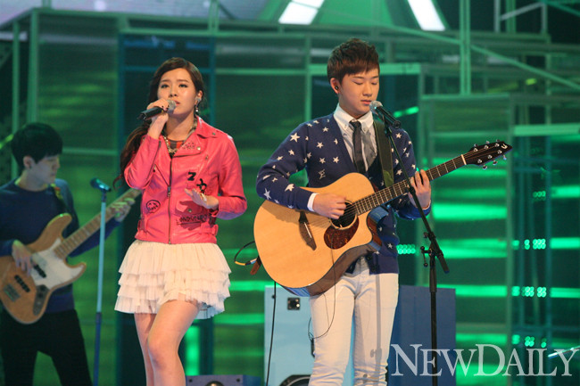 4일 밤 서울 경희대 평화의전당에서 Mnet '슈퍼스타K3' 준결승 생방송 무대가 펼쳐진 가운데 투개월이 럼블피쉬의 '예감 좋은 날'로 공연을 펼치고 있다.