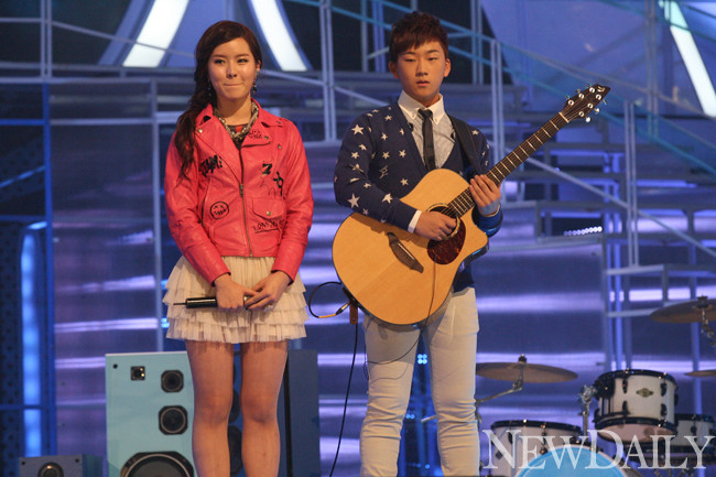 4일 밤 서울 경희대 평화의전당에서 Mnet '슈퍼스타K3' 준결승 생방송 무대가 펼쳐진 가운데 투개월이 공연을 마치고 심사위원진의 평을 듣고 있다.