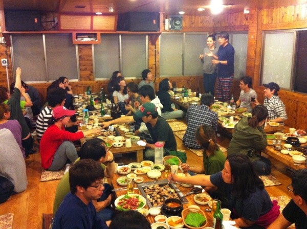 해당 사진은 한가인이 영화 '건축학 개론'의 제주 촬영지에서 고생한 100여명의 스태프와 출연진을 격려하기 위해 직접 마련한 '회식 현장'을 담은 것으로 전해졌다.