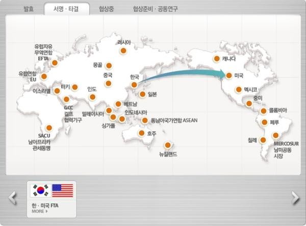 ▲FTA서명 및 협상타결 국가■ FTA서명 및 협상타결 국가: 韓-미국FTA
