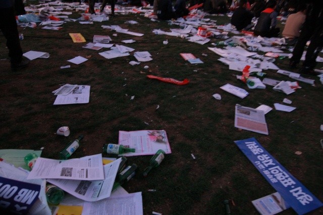 또 다른 시민은 "집회 신고를 했다면 이들이 광장에서 시위를 하든, 여의도공원에서 시위를 하든 문제가 안될 것"이라면서 "다만 집회가 끝나면 먹고 남은 음식물 쓰레기나 신문지·전단지 등은 스스로 치우는 게 기본 아니냐? 일부 시위자들이 뒷처리를 깔끔하게 하지 않아 새벽 마다 청소부원들이 고생하는 것"이라고 지적했다.