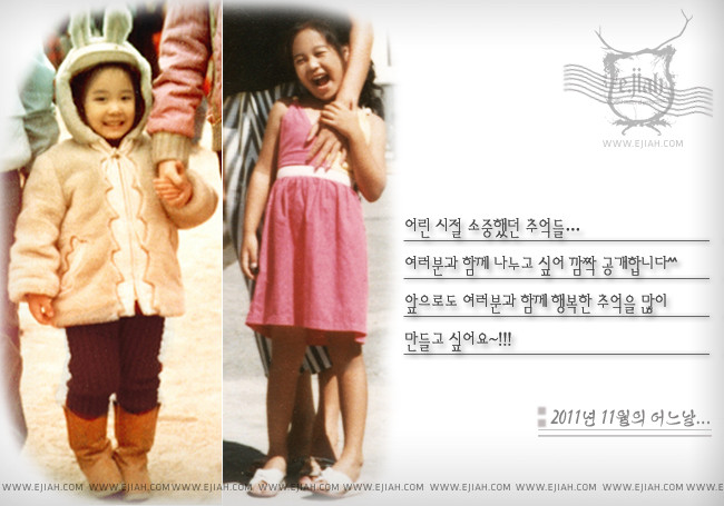 이지아는 지난 20일 자신의 공식홈페이에 "어린시절 소중했던 추억들, 여러분과 함께 나누고 싶어 공개합니다"라는 글과 함께 어린 시절 모습을 담은 사진을 공개했다.