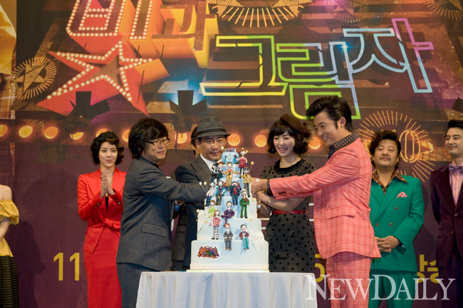 24일 오후 2시 서울 강남구 논현동 위치한 임페리얼 펠리스 호텔에서 MBC 창사 50주년 특별기획 드라마 '빛과 그림자'의 제작 발표회가 열린 가운데 배우 전광렬, 남상미, 안재욱과 이주환 PD가 케이크 컷팅을 하고 있다.