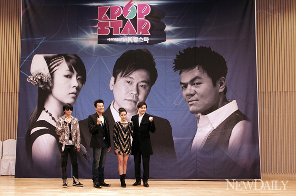 24일 오후 서울 양천구 목동 SBS홀에서 열린 ‘K팝스타’ 제작발표회에는 심사위원을 맡은 JYP의 박진영, YG의 양현석, SM의 보아와 MC를 맡은 윤도현 등이 참석했다.