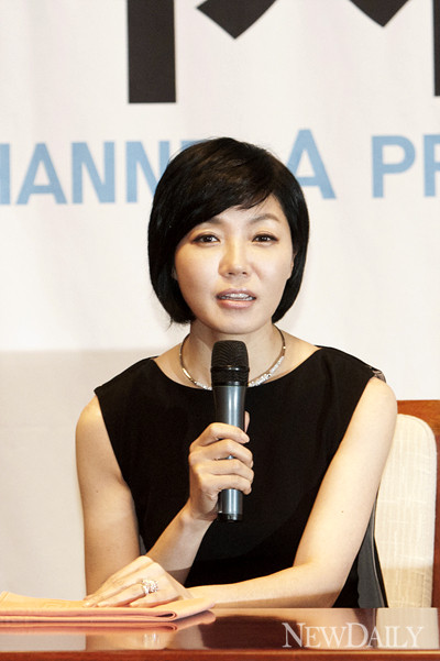 24일 오전 서울 중구 태평로 프레스센터 국제회의장에서 채널A 개국 프로그램 기자간담회가 열린 가운데 정은아가 프로그램 설명을 하고 있다.