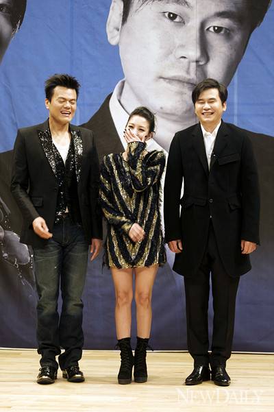 24일 오후 서울 양천구 목동 SBS 방송센터에서 서바이벌 오디션 'K팝스타'의 기자간담회가 열린 가운데 박진영-보아-양현석이 포토타임을 갖고 있다.