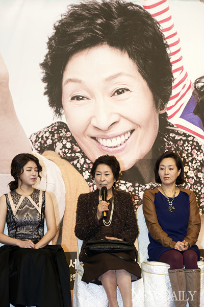 25일 오후 서울 순화동 중앙일보 본사에서 열린 JTBC 시트콤 '청담동 살아요' 제작발표회에서 김혜자가 취재진의 질문에 답하고 있다.