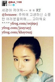이에 신세경도 "아...전 언니 미국에 계신 줄 알고...언니 미국 카톡으로 생일 축하축하 했어요. 조심히 다녀오세요. 감기 조심하시고요!"라며 보아의 건강을 챙기는 모습을 보였다.