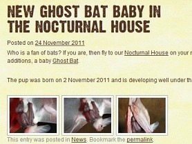 호주 퍼스 동물원은 공식 홈페이지를 통해 "지난 2일 유령박쥐 새끼가 태어났다"면서 어미 품에 거꾸로 매달린 아기 유령박쥐의 모습을 공개했다.