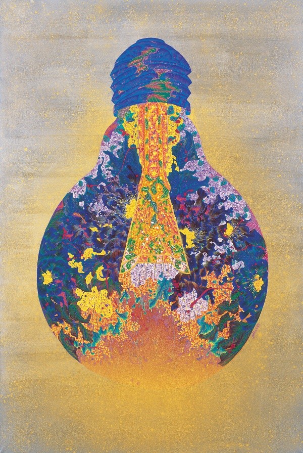 전구는 낮과 밤의 경계를 허문 현대문명의 최전선이기도 하다. 뿐만 아니라 전구의 빛은 세상의 어둠과 아픔을 안아주는 소통의 도구로 기능하기도 한다. 여기에다 전구의 형태와 볼륨은 여성의 이미지를 지니고 있고, 특히 전구 가운데의 필라멘트가 꽃으로 채워지면서 여성성의 생명력이 아름답게 은닉되는 지점으로 묘사된다.